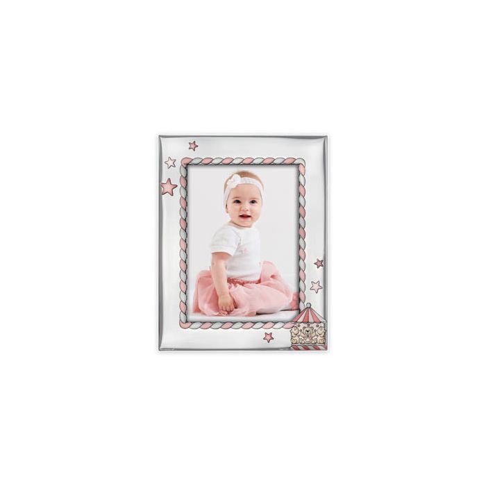Capture the sweetest baby memories in a frame full of charm: the Zep Photo Frame Federico Pink 10x15 cm. Made in Italy, this silver-plated frame features a glossy finish and a refined embossed profile, decorated with adorable pink teddy bears. The elegant design, complete with subtle circus details and coloured stars, makes it a perfect gift for a newborn or a lasting keepsake of a precious baby moment.