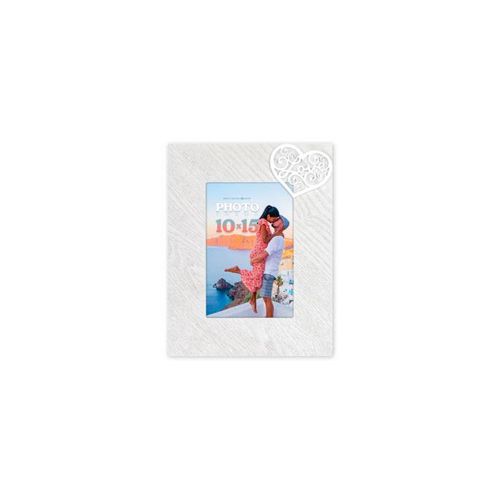 Enjoy the charm of a uniquely designed photo frame, the Zep Photo Frame YN2746 Ginger 10x15 cm. This elegant piece, perfect for one 10x15 cm photo, adds a touch of sophistication to your home or office. The Ginger wooden frame in white and refl color stands out with its decorative print and 3D heart-shaped embellishment on overlapping surfaces, complete with 'LOVE' letters. This love theme makes it ideal not only for personal memories but also as a thoughtful gift. The overall frame size, including the border, is 17 x 22 cm.