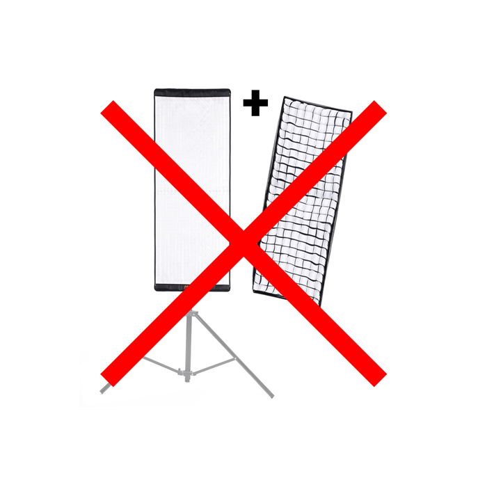 - Softbox, Diffusion cloth, and Honeycomb grid