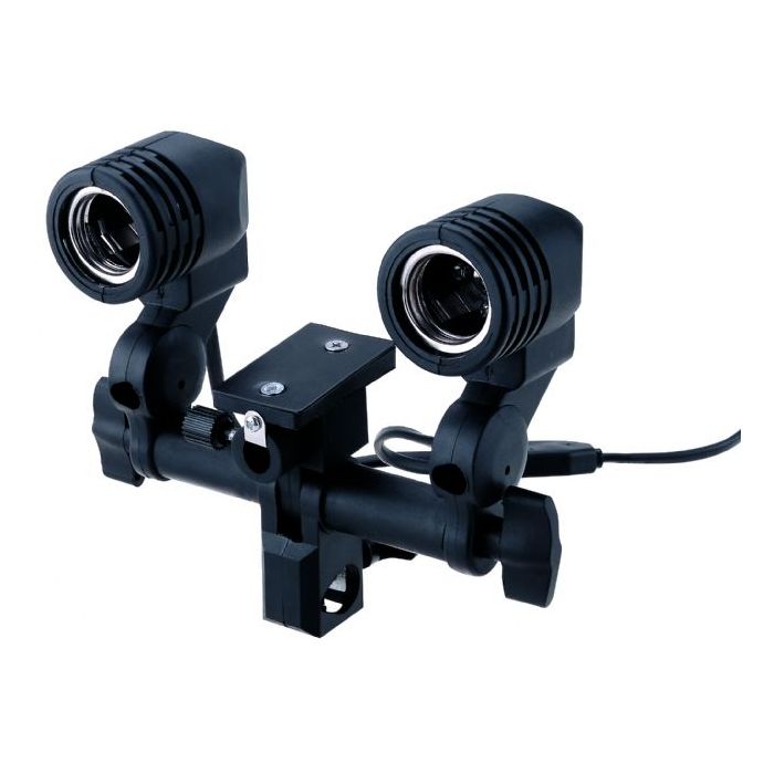 Discover the versatility of the StudioKing universal lamp holder DLE27S, designed to enhance your lighting setup. This lamp holder accommodates two lamps with E27 sockets, allowing you to easily use various slave flashes and daylight lamps for professional lighting. An integrated hole with a clamping screw makes it simple to attach a flash umbrella, perfect for creating soft light diffusion. You can effortlessly mount this holder on any standard light stand with a spigot adapter, so you’re ready to start your photoshoot right away.